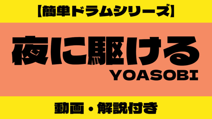 皆さんこんにちは、ドラム講師の片平です。今日の記事は簡単ドラム。こちらの曲の簡単ドラムにチャレンジしていきましょう。YOASOBI『夜に駆ける』YOASOBIと言えばこの曲と言っても過言ではない、『夜に駆ける』です。とても人気があるこの曲、...